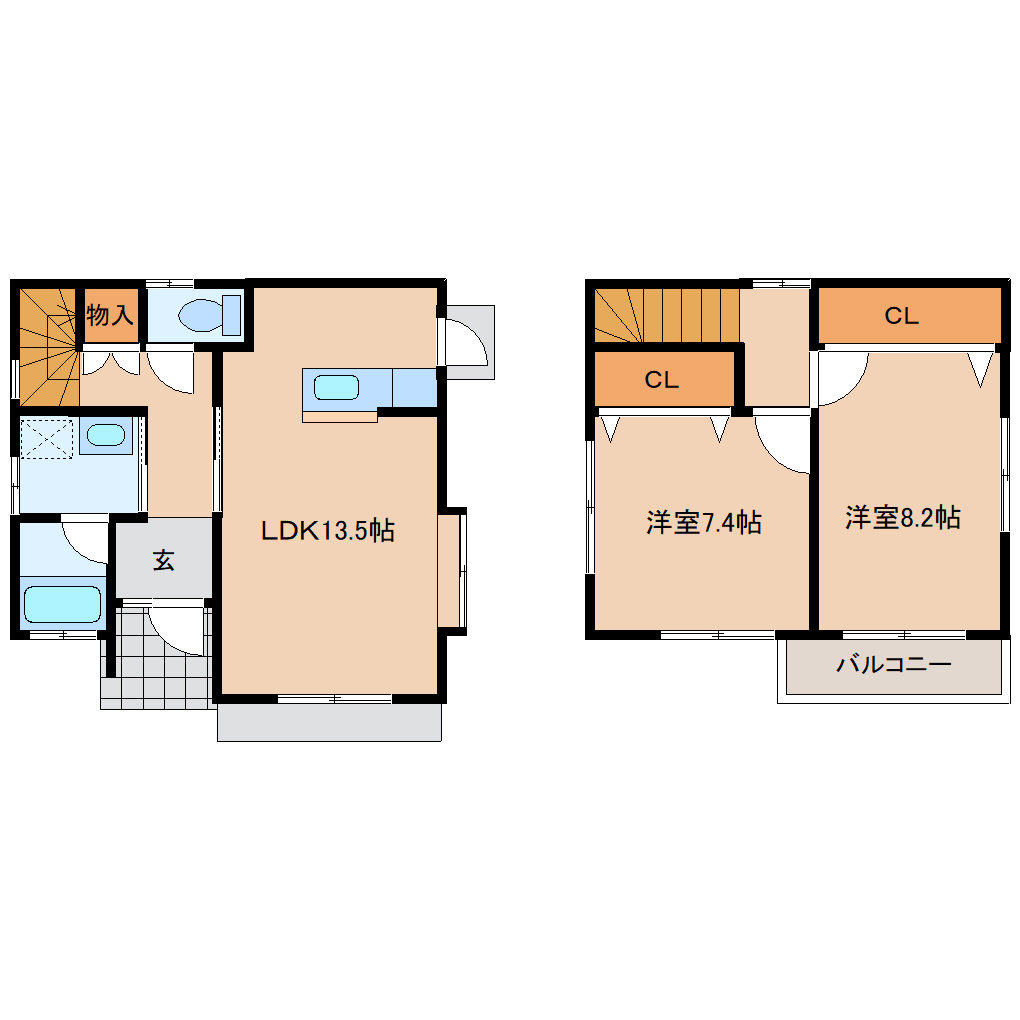 LDK13.5畳 洋室8.2畳 洋室7.4畳 |